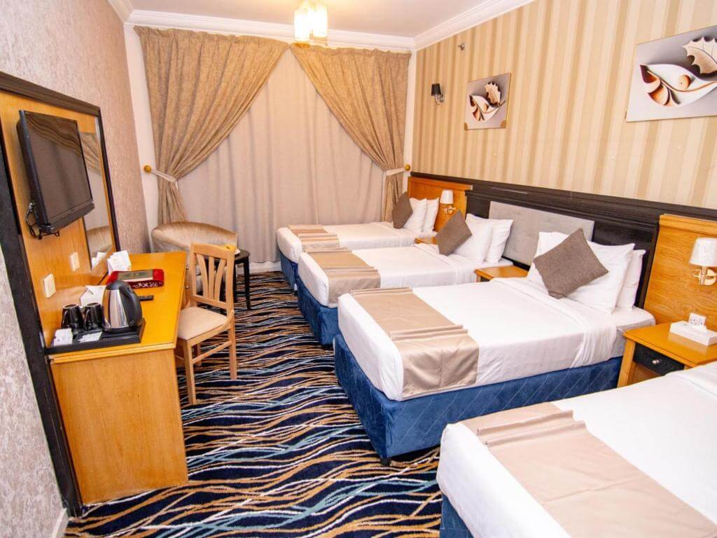The hotel is about 100 km from King Abdulaziz airport and within 6 km of such cultural venues as the 3435 - sq - metre Al-Zaher Palace Museum. Religious sights in the area include the massive Masjid al-Haram Mosque (2.5 km) and the cubical Kaaba Shrine (2.6 km). There is the known Ghar Thowr Mountain nearly a 10-minute ride away, and Mahbbas al Jinnu bus station is very close to this Mecca hotel.